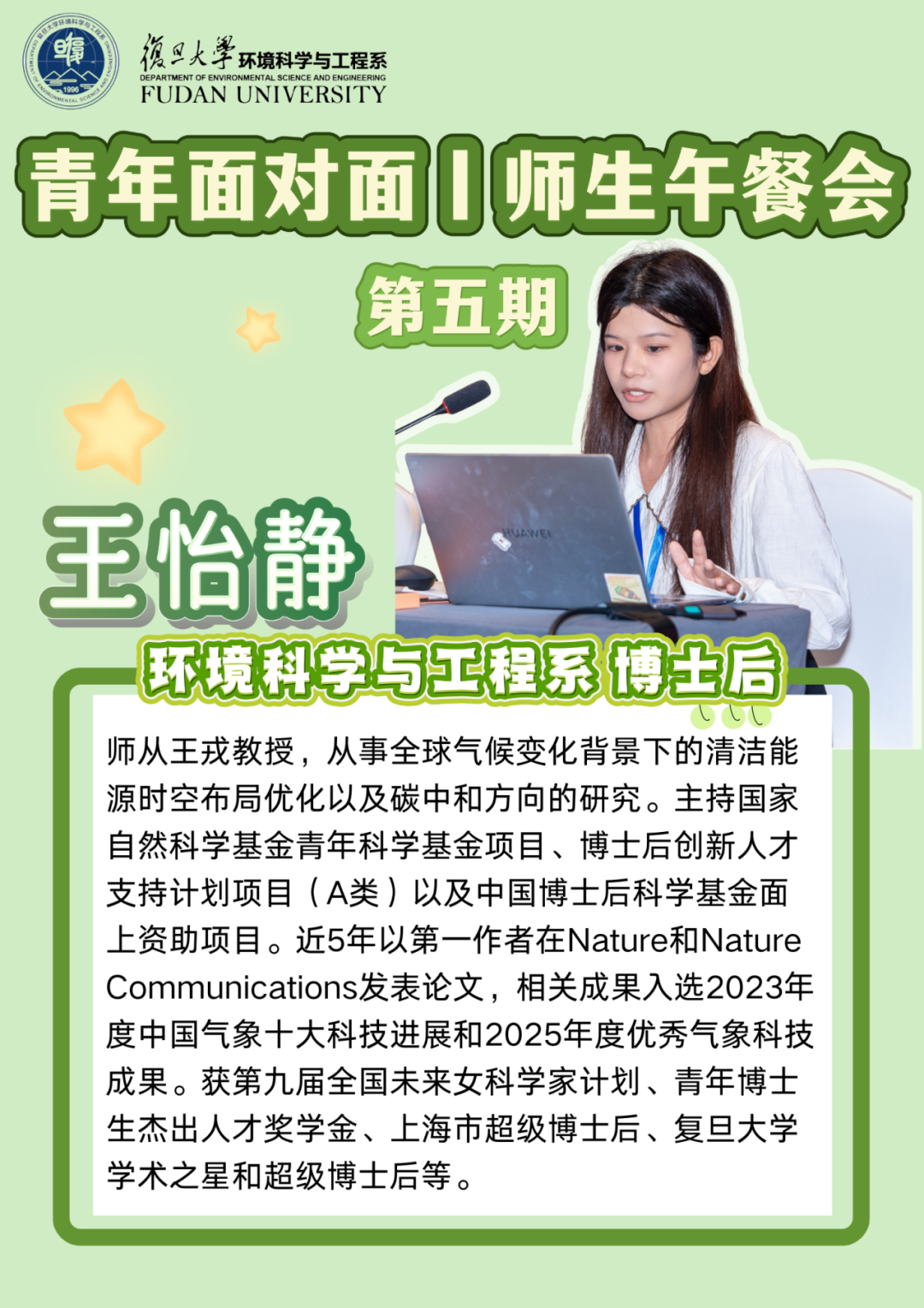 11月26日,环境系第五期 “青年面对面|师生午餐会” 顺利举办。本期午餐会以“我的科研生涯”为主题,邀请到王怡静老师和时长志博士在轻松氛围中为本科生解答科研入门困惑。