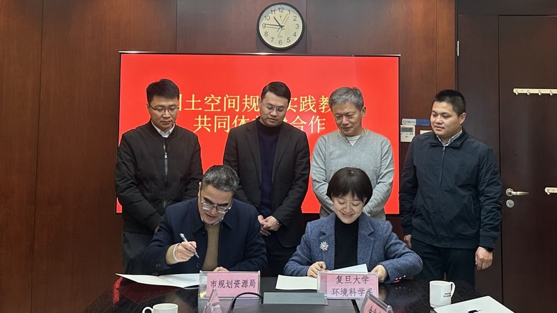 1月21日,杭州市规划和自然资源局与复旦大学环境科学与工程系签署合作备忘录,共同推进国土空间规划实践教学共同体建设。杭州市规划和自然资源局副局长王书评、复旦环境系党委书记张晓清代表双方签约。