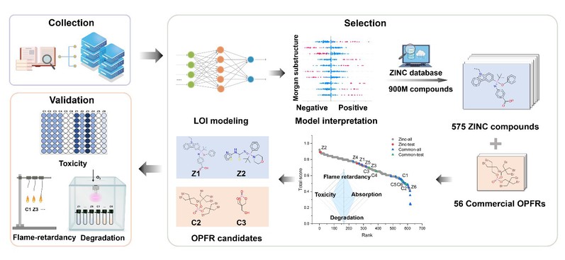 阻燃剂在保障消费品消防安全上至关重要,但传统卤化阻燃剂,像多溴联苯醚,毒性和持久性强,严重威胁人类健康与环境,正逐步被淘汰。有机磷阻燃剂(OPFRs)因毒性较低、环境持久性弱,成为备受瞩目的替代品。然而,OPFRs的毒性成分不可忽视。它们会通过多种途径进入环境,持续接触可能损害神经系统、内分泌系统等。并且,传统研发OPFRs的实验方法既耗费时间又消耗资源,从阻燃性测试到毒性验证,流程繁琐、周期长。为寻求新的安全有效有机磷阻燃剂,亟需建立高效的开发方法实现有机磷阻燃剂的阻燃和安全系统评估。